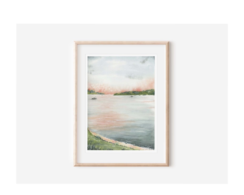 summer at deep creek An evening on Deep Creek Lake brings calm water, gentle light, and the chorus of frogs and crickets. 9×12 inches. watercolor. 2022. Related